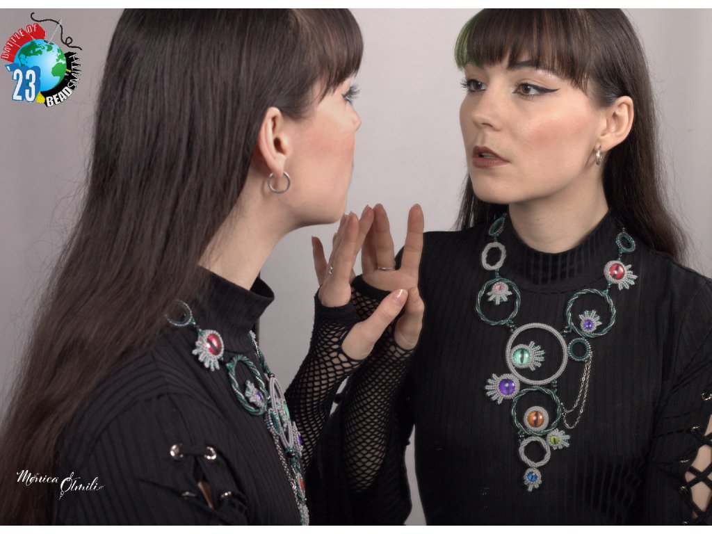 Luxusní šperk s uhrančivýma dračíma očima, jenž reprezentoval ČR v mezinárodní soutěži Battle of The Beadsmith 2023. Jedinečný kousek v moderním designu, vyrobený tradiční technikou, který se nebude nikdy opakovat. Náhrdelník Paranoia & Perfection je jedinečný šperk pro toho, kdo se nebojí být viděn.