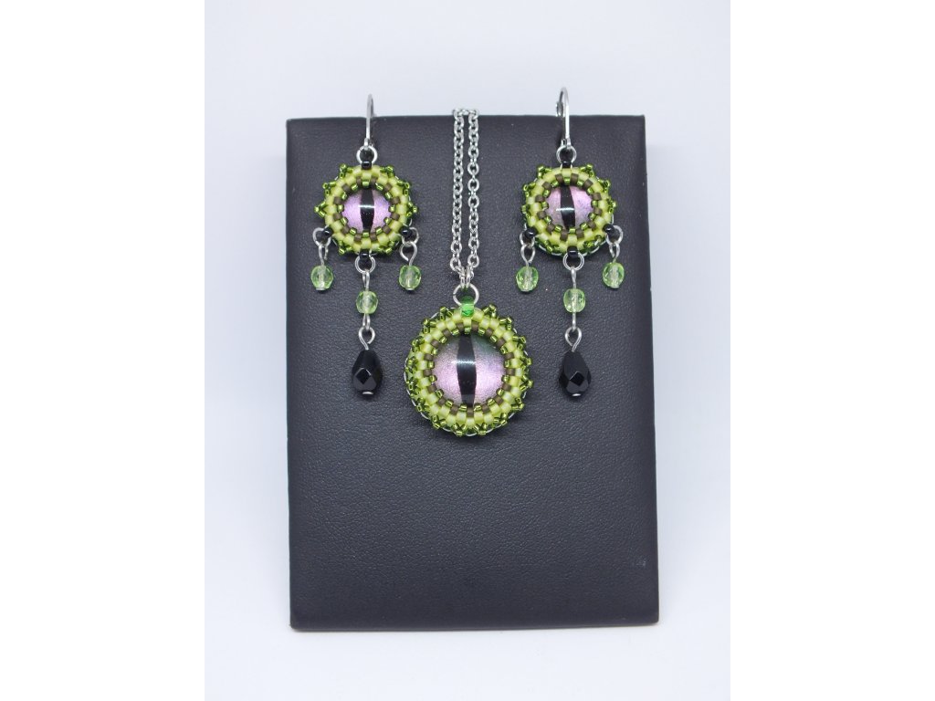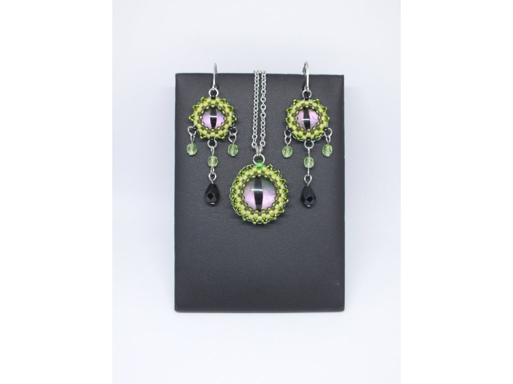 Vyrobeno ručně ze skleněných perliček v České republice. V nabídce pouze jeden pár - jediný originál. Stejnojmenný přívěsek není zahrnut v ceně, lze jej zakoupit zvlášť a vytvořit si tak soupravu ještěřích šperků.