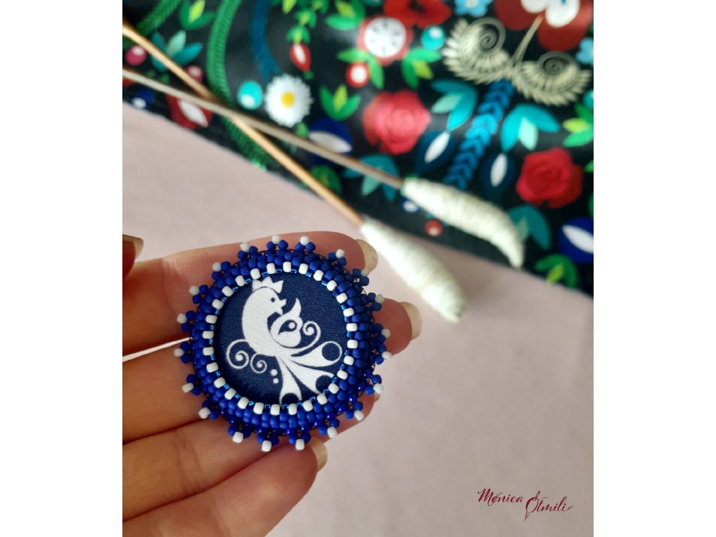 Lidová brož s folklórní tematikou. Modrotisk a svérázový kohoutek. Osloví ženu, které i v dnešní době nosí v srdci úctu ke tradici a odkazu našich předků, přestože již třeba nenosí kroj. Takovou, ve které pohled na ručně zpracovanou brož vykouzlí vzpomínku na prázdniny strávené u babičky na Moravě, nebo jí bude připomínat večery u cimbálu a protancované střevíce na pódiích či mimo ně v rámci folklórních festivalů. Nebo takovou, kterou rázem přenese zpět do chvíle, kdy se zúčastnila přípravy krojovaných hodů v roli příslušnice chasy či dokonce stárky. Brož osloví i ženu takovou, která kouzlo naší lidové kultury teprve nesměle okukuje a ráda by se časem dozvěděla více.