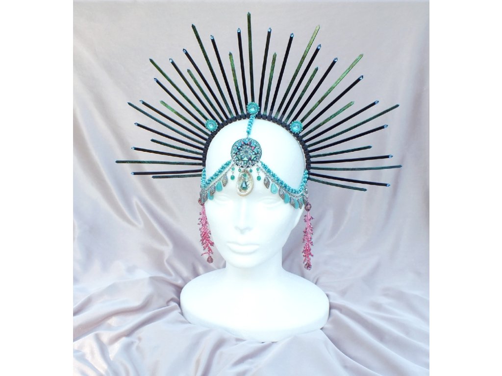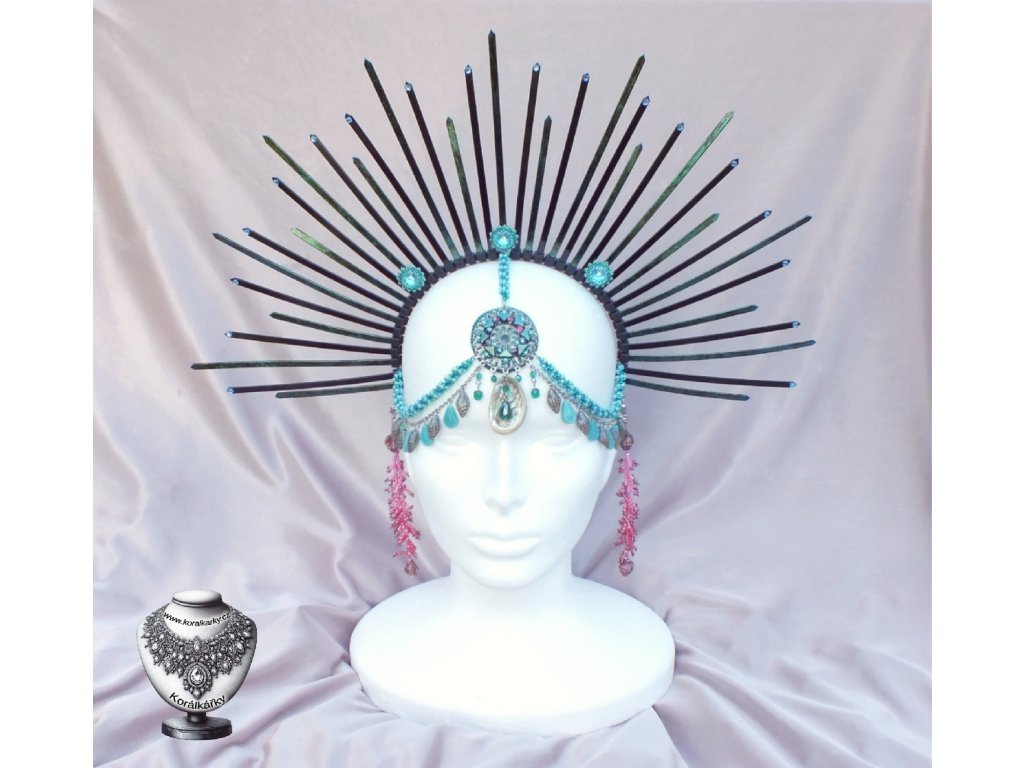 Tato unikátní ozdoba hlavy Vás promění v najádu a učiní nepřehlédnutelnou na jakékoliv události, conu či plese. Vhodná i na tematická focení.