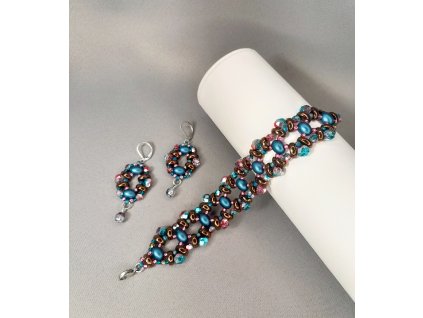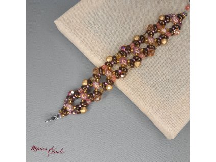 Šitý náramek s autorským vzorem z českých 2-dírkových mačkaných a broušených skleněných perlí.