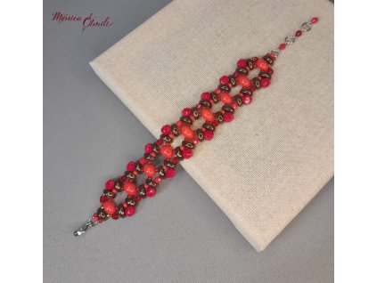 Šitý náramek s autorským vzorem. Kombinace výrazné červené barvy s metalickou kávovou promlouvá k ženám, které se nebojí vybočit z davu a protnout výraznými barvami šeď...